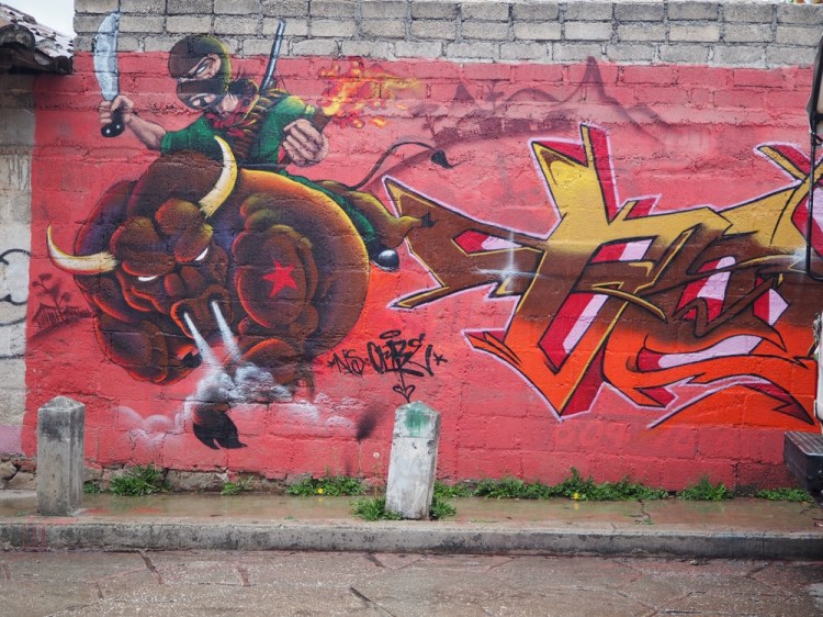 It’s Immediately obvious that San Cristobal is a very political city. Political party advertising is everywhere (particularly the Verde party); there is political graffiti on many buildings and the presence of the Zapatistas is everywhere, from woven masked dolls in the markets, to postcards in the shops, to cafés that openly state their support for the Zapatistas. And there are political demonstrations against the government every day, mainly in the main plaza in front of the cathedral. But it seems there is corruption at every level and despite the protests, people are completely disillusioned with the whole set up and process.