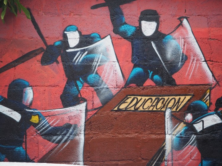 We ask Victor about all the anti-Government protests that are taking place – he tells us that this is in the Mexican culture (it seems even more so than in France!). People like to protest. The teachers seem to be the group that protest most: either for more money; on behalf of the 43 students that disappeared; against the education reforms; or simply against the government. They march, block roads, take over toll booths, go on strike. Apparently, they are the most powerful union in the Mexico. However, the government strategy seems to be to simply ignore these protests. Victor tells us that in Oaxaca, the ‘maestros’ went on strike for a year, for more money. The government strategy was interesting! They simply ignored the teachers and continued to pay them their old salary. That’s a whole state, with no kids being educated for a year. Eventually, parents and families of children who should be at school put enough pressure on the teachers to go back to work. Victor tells us that the government don’t care if the children don’t go to school; an uneducated population is easier to control. He’s not the only one to say this, but it does seem at odds with the governments reform agenda. They want to bring in regular exams to improve the quality of teaching (the subject of many protests). In the past, teaching jobs have been sold and inherited; once you have a job, it’s a job for life. Mexico has historically had the highest cost and the lowest quality of primary school education of all OECD countries. The government now seems to want to change this, but they are paying the price for allowing the teachers’ unions to build immense power.